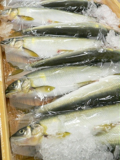三重県いなべ市の日本料理店より本日の仕入れ風景をあれこれ・・・。「鮎」60尾入荷。本日もお隣、滋賀県産です。今週末からの焼き物は、「自家製 鮎の風干し 蓼酢」です。○ 鮎を三枚卸にして骨を取り除き、塩をして一晩干し上げます。焼き上げ→盛り付けの様子は、また後日紹介します。骨が無いので、とっても召し上がりやすいですね。「鮎は、嫌いで食べたことが無かったけど、初めて食べました!」ってお声も毎夏よく頂戴します。三枚卸にした後の中骨は、揚げて、「骨せんべい」に・・・。頭も焼いて「焼き鮎茶漬け」のお出しに・・・。 「鱧 ハモ」6本入荷。「石鯛 イシダイ」入荷。↑ どちらも愛媛伊予長浜産です。「活き蛸(タコ)」入荷。こちらは、地元三重県産。塩でよくヌメリを取り、ボイル。タコって美味しいですよね。血圧を下げてくれるそうですよ。いろんな食材に囲まれる毎日。季節によって、いろいろ替わってくるのも、楽しいですね。 日本料理 万歳! 料理長