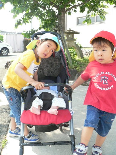 イイお天気が続きますね。登園前のお散歩の様子です。今日は赤ちゃん(もうすぐ2ヶ月)も参加!近所の畑を見て回るのも楽しいですね。↑ 「空豆は空を向いてなるので 空豆 ソラマメ なんやで~。」『食育』しながらのお散歩も良し。西町通りをお散歩中です。「ツバメの巣」があちこちにあります。巣を作ると、商売繁盛するといいますね。そのため、どのお家もツバメを迎え入れています。今では随分少なくなりましたが、西町通りは、いなべを代表する商店街なんですよ。 さて、夕方のお散歩。私の友達の家にお邪魔しました。キャンピングカー持っています。私の同級生・・・皆、家庭を持ち、20代で家を建てて、立派になさっています。ご両親・ご先祖に心配かけないのが、一番の親孝行でしょうね。私も頑張ろう!畑で「独活 うど」の栽培もしている同級生。たくさん頂いてきました。さらにお散歩。いなべっこへ。↑ 三男、2ヶ月前にして いなべっこデビューです。まさに いなべ産の子供・・・いなべっこです。新茶の出荷も多いですね。お茶も『いなべの特産物』の一つですよ。この季節はお散歩に気持ちいい空気感。田植えの風景、畑の様子、しっかり『食育』して参りましょう。 料理長