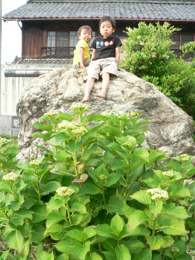 年末から大忙しの半年間でした。これからの夏場は、比較的お客様が少なく、ホッとする時期でもあります。この時期にいろいろ(料理・サービス・改修・子育てなど)と見直して参りたいと思います。お天気が続きますね。子供達の登園の前に毎日少しだけお散歩しています。最短ルートを通って、いざ「阿下喜温泉 あじさいの里」へ。5分もかかりませんね。11時オープンなので、もちろん誰もいません。外にある無料の足湯(温度違いで3浴槽あります)。毎日お湯を抜いて綺麗に掃除されています。もちろんかけ流しです。温度は低いので温めています。「今日もあの↑石垣に登ろう!」 男試しです。ママ(若女将)に見つかったら怒られるだろうな~。パパとのナイショのお散歩。子供達には大好評で~す。 料理長