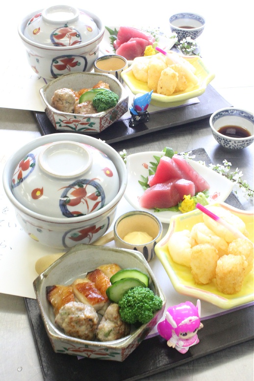 三重県最北端いなべ市の日本料理 昭栄館の料理長のブログです。本日は、お子様料理のご予約が6名様。お料理風景を少しご紹介して参りましょう。 (写真には、2人前写っています)小学生向けのお子様料理・・・1800円(税込み)。写真の松花堂弁当の他、御飯 アイスクリーム おもちゃをご用意しています。内容は、左上 茶碗蒸し右上 お造里左下 かしわの照り焼き いなべの恵み焼き(京ヶ野さくらポーク)右下 海老の米粉揚げ ポテトフライ です。 中学生以上のお子様は、内容・量共に会席料理をオススメします。当店にお越し頂くお子様は、ご法事などでご利用されることがほとんどです。長いお参りの後の2時間くらいのお食事。退屈な時間かもしれないので、少しプレゼントをご用意しています。本日は、女の子お二人、スマイルプリキュア キュアハッピーゲゲゲのキティちゃん をプレゼント。男の子は4名様。仮面ライダーフォーゼ ベースステイツ仮面ライダーフォーゼ ファイヤーステイツ仮面ライダーフォーゼ メテオ などをプレゼント。ごゆっくり召し上がり頂いた後、もう一度プレゼントがございます。男の子用 女の子用、たくさんのおもちゃを盛り合わせて、お座敷に運びます。 お好きなおもちゃを一つお選びくださ~い。当店は、広いじゅうたん敷きのロビーがございます。 とても足の裏が気持ちよくて、お子様、退屈しませんよ。 よくゴロゴロと転がっていらっしゃいます。 お子様のご来店。どうぞお気軽に。 本日もたくさんのご来店ありがとうございました。 料理長