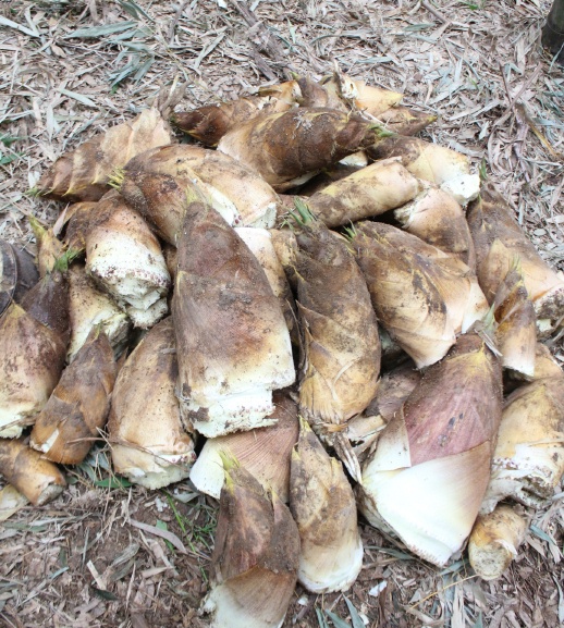 三重県最北端いなべ市の日本料理 昭栄館の料理長のブログです。今日はご予約がございませんでしたので、家族みんなで筍山へ参りました。親戚が所有する桑名(在良~坂井橋の山手の住宅地、有吉台の奥です)の筍山。今日は父・母・妻も一緒に山の手入れを手伝ってもらいました。・枯れ竹をチェーンソーで短く切る・運んで集める平坦な場所ではないので、重労働です。その間、私はせっせと筍掘り。今シーズン、5回目になります。1時間で 50キロほどでしょうか。今シーズン一番の収穫です。さすがにこの時期、大きいものが掘れるようになってきました。今回も皮をむいて持ち帰ります。ゴミが出ませんし、茹でるお鍋が少なくてすみます。帰ってちょっと休憩してボイル。鮮度がいいうちに茹でるのでイイ風味が閉じ込められますね。桑名は都会名古屋(車で30分かかりません)に近いので、特に新鮮なものとして扱われますね。 桑名の筍といえば、名古屋ではブランド扱いです。いよいよ庭の山椒の木もイイ感じになってきました。軟らかい木の芽がたくさん出てきています。よく見ると、花山椒も付いていますね。 前回 第4回筍掘りの様子は、コチラ!いよいよ筍の最盛期。 筍会席のご予約、お待ち申し上げま~す。 料理長