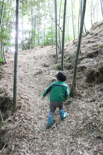 三重県最北端いなべ市の日本料理 昭栄館の料理長のブログです。今日は夕方から桑名に筍掘りへ。今シーズン6回目。3歳の三男と二人で参りました。3歳にして、2回目の筍山(前回連れて行った時の様子は、コチラ!)。嬉しそうに長靴履いて、ミニ軍手して、グングン上がっていきます。もう少し、頑張ってね~。私が探して掘り上げ、三男が籠まで運びます。足手まといになるかと思いましたが、いい連携が出来ました。30分でこれだけ、30キロくらいの収穫。筍の大きさからもわかるように、いよいよ後半になってきました。(シーズンは、小さいものから始まり、大きな筍が出だすと終盤です。)今回一番大きな筍です。これでも一番上のトンガリひげの部分、3センチくらいしか顔を出していません。どのくらいの大きさか、どこが根とつながっている部分なのか、予想しながら、土にトンガを入れます。 結構重労働です。最後に記念撮影。昨年は、ほとんど一人で出かけた筍山。今年は子供と一緒でとても賑やかです。「いい思い出になったね~。また筍山来ようね~。」帰ってきて、すぐボイル。鮮度のいいうちに茹でるのが大事ですね。 期間限定ですが、筍会席、承り中で~す。 前回、第5回目の筍掘りの様子は、コチラ! 料理長