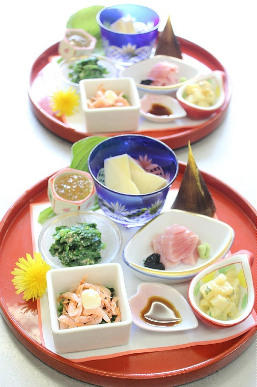 三重県最北端いなべ市の日本料理 昭栄館の料理長のブログです。5年と7ヶ月、毎日ブログ書いています。仕入れのこと・お料理のこと・日本の四季のことなど、いろいろ・・・。まずは、庭の木々花々の様子から。「黄桜」が開花しています。庭の隅っこに植えてありますので、お気づきになるお客様は少ないかもしれません。染井吉野より遅れて咲いてきます。これからが見頃。お料理のあしらい用に少し採りました。「山椒の木の芽」です。敷地内に7本くらい植えてあります。明日金曜は雨とのこと。週末に向けて、600枚くらい採りました。前菜 1枚 お椀 1枚 焼き物 1枚 御飯 1枚、お一人様に 4枚ほど使用します。それでは、本日のお料理風景を一部ご紹介して参りましょう。今日は、桑名から常連の奥様方のご予約。先日8日にお誕生会でお越し頂いています。今月2回目のご来店なので、今日は特別にお献立してご用意しました。「前菜」です。輪島塗の朱盆に春のお料理を盛り合わせて・・・。内容は、・筍 蕗 若布 木の芽ゼリーかけ・いなべの菜花の胡麻和え・駿河湾産 釜揚げ桜海老 いなべのほうれん草の浸し 生姜マヨネーズ・筍の木の芽味噌和え・京都丹後産 天然本まぐろの大とろ 海苔の酒和え 本山葵 土佐醤油庭で採りたてのギボウシの若葉、タンポポをあしらって、いなべの季節感を・・・。 今月2回目のご来店なので、コース全体的にサービス気味の内容です。「お椀」です。宍道湖の白魚を焼いて・・・煮麺(三輪素麺) 神馬藻(ジンバソウ) いなべのブロッコリー 桑名の筍 自家栽培の木の芽 梅肉湯気がご馳走・・・写真は、いつも一瞬一瞬を大切に撮っています。 すぐ、蓋をして仲居に運んでもらっています。「お造里」です。庭で採りたての黄桜をあしらって・・・。内容は、・高知土佐清水産 初鰹 いなべのウド 菊花浸し 卸し生姜 土佐醤油 柚子ポン酢 お好みで・・・ ・富山湾産 釜揚げ蛍烏賊 いなべのわさび菜 筍 芥子酢味噌 でした。黄桜を採りに外に出ると、どこからかワンちゃんの鳴き声。お客様のお車の中でした。大きな染井吉野の日陰でしたし、窓を少し開けてもらっているので、安心。この後、また見に行きましたら、スヤスヤお昼寝中でした。 「果物」です。いなべの多湖農園さんの紅ほっぺ 白ワインきらきらゼリー アングレーズソース 庭で採りたてのビッグムスカリをあしらって・・・。恥ずかしながら今日のご予約は、コチラお二人様だけ。(今度の日曜は、お昼だけで82名様のご予約を頂戴しています。)常連様は、空いた日をうまくご利用になりますね。こちらもゆっくり、より丁寧にお料理できます。 本日もご来店ありがとうございました。桑名といえば、ゴールデンウィーク明けにピアノコンサートがありますね。5月7日(月) 桑名市民会館 有名な方ですね~。 平原誠之さんのHPは、コチラ! 4月24日(火)は、営業しま~す。 料理長