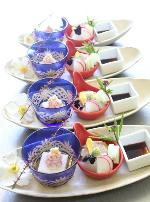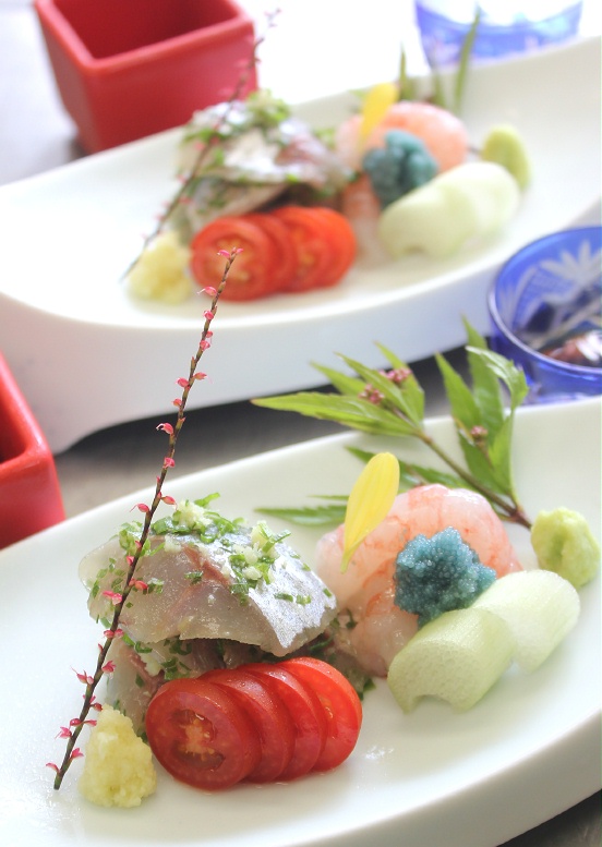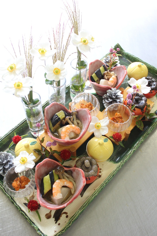 三重県最北端いなべ市の日本料理 昭栄館の料理長のブログです。本日21日(日曜)のお料理風景を少しご覧頂きましょう。今日のご予約は、・古希(70歳)のお祝いのご家族様・・・桑名から 9名様と お子様 2名様・65歳の同級会様・・・11名様 でした。家族集まっての還暦のお祝い、懐かしい高校時代の同級会など、 いなべの昭栄館は、今日も幸せレストラン。古希のお祝いのご家族様のお献立です。古希のお二人様だけ、少しお料理を追加して・・・とのご要望でしたので、前菜を華やかな八寸にしてご用意しました。始めのお料理「ぼんぼり八寸」です。・大根と人参とカメヤマローソクで作ったぼんぼりキャンドル・おめでたい紅白の紙。・鶴や亀の水引飾り。・鯛の器にはお赤飯。・長寿を祝う鶴や亀の器には、子持ち昆布とオクラ 唐墨大根。・紅白鏡餅の器には、いくら温玉和え。長寿をお祝いし、たくさんの卵でさらなる子孫繁栄を願います。 古希 おめでとうございま~す。同級会は、65歳の皆様。高校時代の同級会のようです。皆様、たくさんお飲みになりました。同級生同士なので、とにかく楽しい雰囲気でした。同級生っていいですよね。ほんと気楽で、楽しくて・・・。 2月のバレンタイン厄除けツアーの様子は、コチラ。同級会の皆様の「お造里」です。長皿にいろんな小鉢を盛り合わせて楽しく・・・。内容は、左から・山芋豆腐 紅ずわい蟹 いなべの卸し生姜 大和芋 美味出し・京都丹後産 のど黒の炙り 赤いか いなべの芋茎 いなべの赤大根 菊花 本山葵 土佐醤油 でした。庭で採りたての水引(ミズヒキ)は、終了間近。 秋明菊も今週末まで持つかどうか・・・。 秋の七草の一つ 藤袴(フジバカマ)も終了間近です。これから冬枯れの季節。 季節の彩りは、だんだん寂しくなってきますね。 この秋もスーパーもみじに期待しましょう! 本日もたくさんのご来店ありがとうございました。 料理長