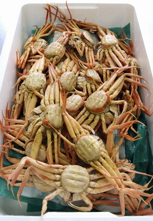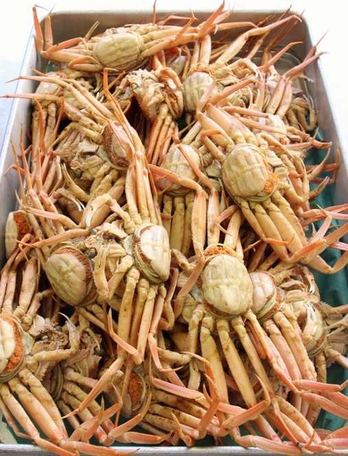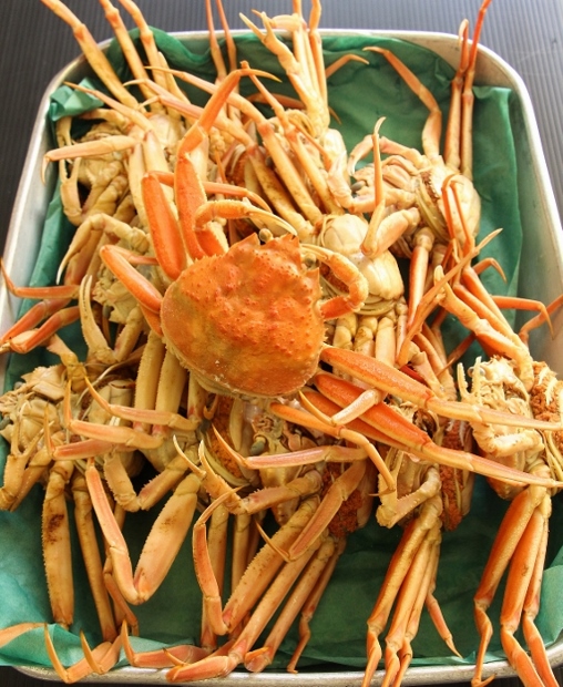 三重県最北端いなべ市の日本料理 昭栄館の料理長のブログです。本日は、11月8日 土曜日。仕入れもののご紹介から参りましょう。「せこ蟹」入荷。松葉蟹のメスのこと。本日は、25ハイ。京都は丹後半島網野から茹でたて直送。今シーズン初入荷。まだ解禁したばかりですね。 メスのせこ蟹。このくらいのサイズのものを仕入れています。 メスと言えば、卵。 ↑写真の外子(そとこ)と甲羅の中の内子(うちこ)の2種類の卵が楽しめます。 味噌も美味しいですよ~。 細い足ですが、丁寧に一本ずつ、身を取り出し、 召し上がりやすいように、準備しました~。 本日明日の特別会席(7,000円~)のお造里に登場します。「天然ひらめ」入荷。本日は、5キロくらいのサイズ。大きいですよ~。コチラも丹後から獲れたて直送です。夜の特別会席(ご結婚披露宴 58名様)のひらめ茶漬けに・・・。明日も、天然ひらめ入荷します。5、9キロサイズの予定です。この他、地元阿下喜の魚屋さんから まぐろ 入荷しました。店内の食材ご紹介ボード。2年前に作った蟹のパネル、出してきました。なかなか綺麗に撮れていると思います。本日のお客様は、ご法事に、ご結婚披露宴。 お料理風景は、後ほど! 料理長