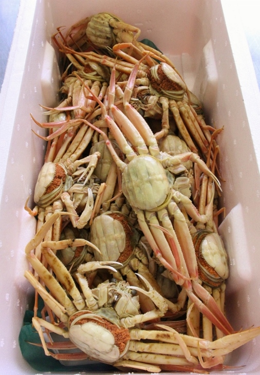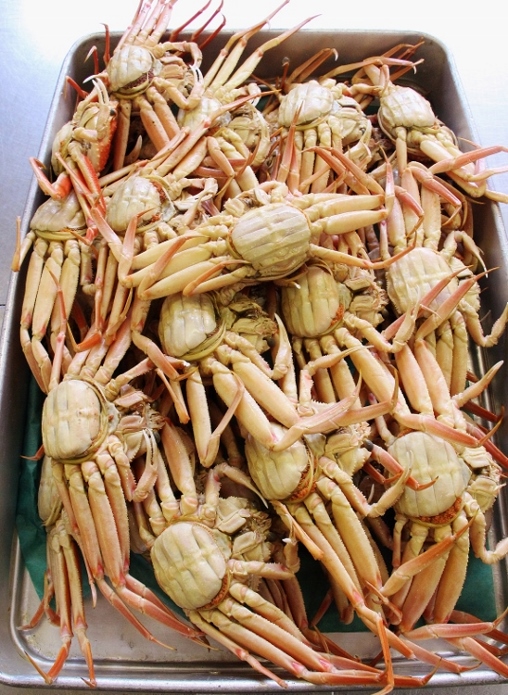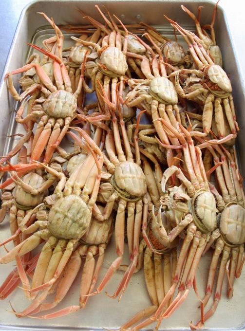 三重県最北端いなべ市の日本料理 昭栄館の料理長のブログです。本日は、11月22日 土曜日。仕入れもののご紹介から参りましょう。「せこ蟹」入荷。松葉蟹のメスのこと。京都は丹後半島網野からボイル後直送です。本日は、20パイ。今シーズン140パイ目の入荷です。「松葉蟹(オス)」入荷。今シーズン、オスは初入荷。コチラも丹後からボイル後直送です。ずっしりしたとてもイイ蟹でした。やはりオスは、風格がありますね~。本日夜、明日のお昼の特別会席に登場します。本日のオスは、兵庫県は浜坂で水揚げされた蟹のようですね。オスは、何度見てもかっこいいです。ちょうどお店に遊びに来ていた次男と松葉蟹(オス)の記念撮影。丹後の魚政さん、いつもイイ蟹ありがとう!「紅葉鯛」入荷。この時期獲れる天然の真鯛のこと。本日は、2,5キロサイズ。コチラも丹後から直送です。紅葉鯛と次男の記念撮影。お造里や鯛茶漬けにお料理しました。「天然ぶり」入荷。大きすぎて、顔だけでゴメンナサイ。本日は、12キロものの片身が入荷しました。京都は伊根の天然ぶり。有名ですね。「鳥羽浦村の牡蠣」入荷。コチラは、地元阿下喜の魚屋さんから仕入れました。牡蠣の含め煮にしたり、牡蠣の土手鍋にします。この他、マグロも入荷しました。今日は、いい夫婦の日でしたね~。 本日のお料理風景と続きま~す! 料理長