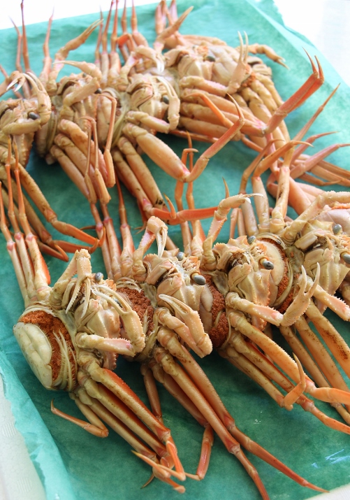 三重県最北端いなべ市の日本料理 昭栄館の料理長のブログです。本日は、11月14日 金曜日。仕入れもののご紹介から参りましょう。「せこ蟹」入荷。松葉蟹のメスのこと。本日は、30パイ。今シーズン55ハイ目の入荷となります。京都は丹後半島網野から茹でたて直送。 ↑ 外子たっぷり~。 さあ、キバッテ捌きましょう! ↑ 本日の前菜の一品として登場しました。 また後ほど、詳しくご紹介します。「紅葉鯛 もみじだい」入荷。紅葉鯛・・・この時期獲れる天然の真鯛のこと。本日は、2キロくらいでしたでしょうか。コチラも丹後から獲りたて直送です。(白っぽいのは、うろこをかいた後の写真のためです。) ↑ 本日のお造里です。 また後ほ、詳しくご紹介します。「極上シラス干し」「子持ち昆布」入荷。シラス干しは、静岡県舞阪産。とても細かい極上品。自家製のちりめん山椒に炊き上げます。 ↑ 子持ち昆布は、カナダやアメリカ産ですが、天然もの。 ニシンさんが昆布に産み付けた卵のこと。 分厚いでしょう~。高級食材の一つです。 長年のお付き合い川崎の魚屋さんから仕入れています。「鳥羽浦村の牡蠣」入荷。本日は、2パック。地元阿下喜の魚屋さんから仕入れました。旨みの強い加熱用の牡蠣を仕入れています。この他、マグロも地元阿下喜の魚屋さんから仕入れました。「本山葵 ほんわさび」入荷。本日は、2キロ。静岡県有東木から採りたて直送。17代400年続く日本最古のわさび農家さんです。地元いなべ食材の仕入れに いなべっこ に参りました。本日の仕入れものは、油揚げ ブロッコリー 産みたて玉子は、地元いなべ産。牛乳 アイスクリームは、四日市酪農の製品です。 本日もいろんな食材が入荷しました~。 続いて、本日のお料理風景で~す! 料理長