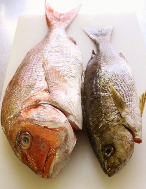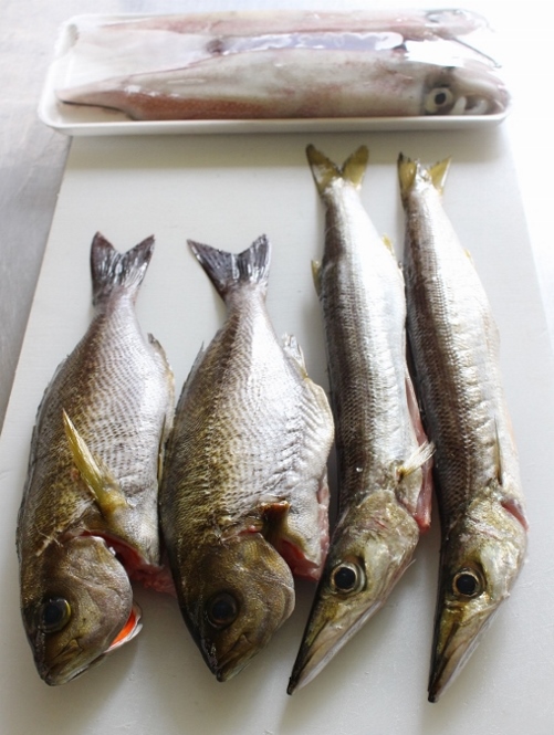 三重県最北端いなべ市の日本料理 昭栄館の料理長のブログです。本日は、7月3日 金曜日。仕入れもののご紹介から参りましょう。まずは、産地直送の食材から。「生じゅんさい」入荷。本日は、3キロ。秋田県森岳から採りたて直送。今シーズン25キロ目の入荷となりました。「鱸 スズキ」「鯵 アジ」入荷。スズキ・・・本日は、2尾で3,3キロサイズ。アジ・・・4~5尾だったでしょうか、合計2,5キロ。どちらも京都は丹後半島から獲りたて直送です。本日のアジは、大物。38~40センチありましたよ。「連子鯛 レンコダイ」入荷。本日は、10尾。コチラも丹後から獲りたて直送。白っぽく見えるのは、ウロコをかいた後の状態だからです。連子鯛は、30センチサイズ。 ↑ 連子鯛の写真、拡大出来ますよ。 「かしわ」入荷。本日は、もも肉 20キロ。香川県の農協から朝引き後直送です。地元いなべ食材の仕入れに いなべっこ に参りました。仕入れものです。とうもろこし ピーマン キャベツ ミニトマト 産みたて玉子 さくらポークは、地元いなべ産。海苔は、お隣 桑名産。牛乳とヨーグルトは、四日市酪農の製品です。今日は、まかない用にさくらポークのハンバーグ用タネを仕入れました。もちろん、玉葱も味も入っています。これで、メンチカツを作ると、美味しいですよ~。桑名の海苔ですが、今日仕入れたのは、胡麻油が塗ってある韓国のりタイプ。やさしい塩加減で、美味しいですよ~。我が家の朝食には、欠かせません。 本日もいろいろ入荷しました。この週末は、たくさんのご法事をはじめ、ご両家顔合わせ 今年10組目のお客様、当店大人気の赤ちゃんのお食い初め 今年36 37 38組目のご家族様、当店大人気の一歳のお誕生会 今年10組目のご家族様米寿のお祝い 今年10組目のご家族様のご予約を頂戴しています。 さあ、張り切ってお料理して参りましょう! 料理長