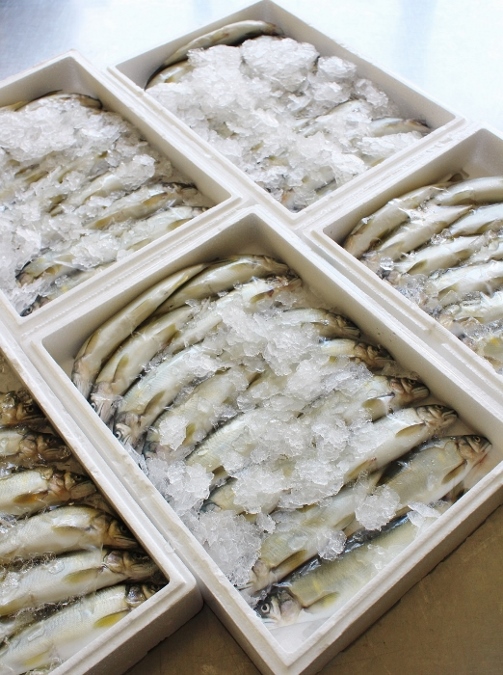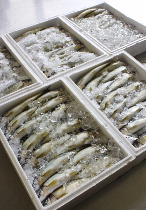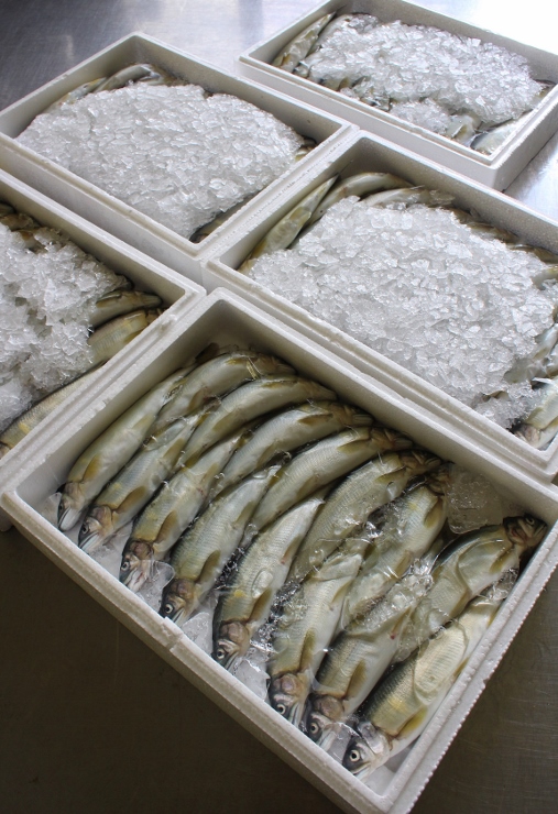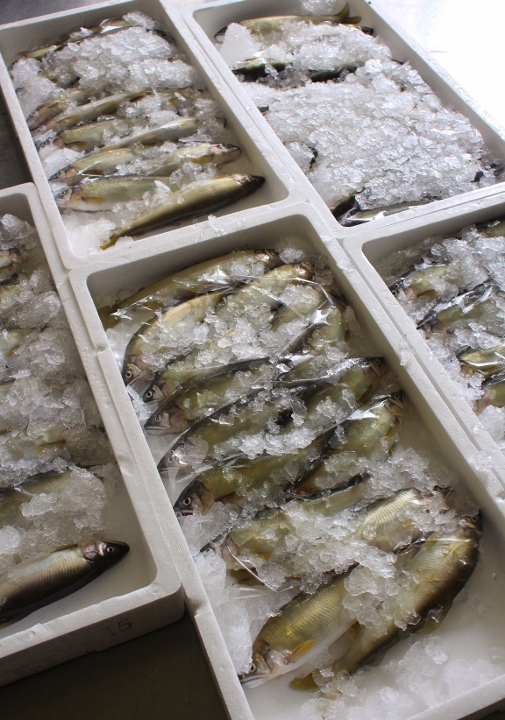 三重県最北端いなべ市の日本料理 昭栄館の料理長のブログです。本日は、7月23日 木曜日。仕入れもののご紹介から参りましょう。「鮎 アユ」入荷。本日は、75尾。地元阿下喜の魚屋さんから仕入れています。今シーズン930尾目の入荷となりました~。明日の入荷で1000尾目を超えそうです。「鱸 スズキ」「剣先烏賊 ケンサキイカ」入荷。スズキは、2,2キロサイズ。剣先烏賊は、4ハイで2キロ。京都は丹後半島網野から獲りたて直送です。ちょうどお店に来ていた三男。イイ食育になりました。地元いなべ食材の仕入れに いなべっこ へ。本日仕入れたのは、 とうもろこし オクラ 大葉紫蘇 黒豆 ゴーヤ 胡瓜 麦茶ティーパック 産みたて玉子 さくらポーク、これらは全て地元いなべ産。 牛乳は、四日市酪農の製品です。本日夜のお客様は、市内から団体様35名様。お献立です。 地元いなべ食材は、色を変えて印刷しています。結構いろいろあるでしょう~。お帰りの際に、記念写真を承りました。記念写真用メッセージボードをいろいろお持ちになって・・・。本日は、皆様分35枚の焼き増しを承りました。 昭栄館の記念写真無料郵送サービスって?お写真のお届けまで、一週間くらいお待ちくださ~い。大切なお席に当店のご利用ありがとうございました。 料理長