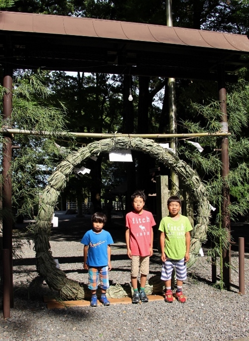 三重県最北端 いなべ市「阿下喜 あげき」の 日本料理 昭栄館 の料理長です。我がいなべ市は、岐阜県 滋賀県との県境があります。今日は、7月21日 火曜定休日。料理長の休日です。家族みんなで、いざ東近江方面へ。東近江へは、石槫トンネルを抜けてすぐ。とっても便利になりました。先月でしたか、地元ケーブルテレビで紹介されていた「太郎坊宮 たろうぼうぐう」に初めてやってきました。阿下喜の町から、車で1時間と10分ほど。 太郎坊宮のHPは、コチラ。中腹の駐車場に車をとめて、階段を上がること200数段。夫婦岩の前で記念撮影。大きな岩の80センチの隙間。嘘つきは、はさまれるそうです。 ↑ 次男 ↑ 三男 ↑ 長男はさまれず、無事通れました。本日の目的の一つ。有名なお守り「勝守」を求めに来たのです。家族みんな、自分のお小遣いで・・・。 ↑ 私が求めたのは、デニムタイプのお守り。 ↑ とにかく、自分に勝てますように・・・。この後、ヒトミワイナリーさんに寄って、白ワイン(100%国産のデラウェア使用) パンを購入。とっても美味しかったです。また、ワイン買いに来よう~。ひとみワイナリーさんは、2回目の訪問でした。前回訪れた 2011年5月18日は、コチラ。続いて、池田養魚場さんへ。(阿下喜から直接ですと、車で15~20分。)岩魚(イワナ)の養魚場でとても有名です。コチラは、5回目の訪問。 初めての訪問 2011年 5月18日の日記へ。 2011年 7月13日の日記へ。 2012年 7月25日の日記へ。 2014年 7月29日の日記へ。まずは、アマゴ釣りから。養魚場ののご主人に「竿を貸してください」とお願いすると、『昭栄館さんやね。』って。私、5回目の訪問でしたが、ご挨拶していませんでした。それなのに、よくご存じで・・・。『昭栄館さんから聞いて・・・ってお客様が、 ちょくちょくいらっしゃるよ。』って。ご主人さんもブログをご覧になったことがあって、我が子たちの顔もご存知だったんでしょうね。 ブログを8年と10ヶ月毎日書いていると、いろいろと縁を感じる日々です。 ↑ コチラが、アマゴ。一本だけ竿を借りて、兄ちゃんから順番に挑戦します。なかなか、アマゴは手強く、釣れません。次男もダメ。続いて、三男。見事、釣り上げました~。大きかったですよ~。続いて、隣のイワナの池へ。 ↑ 次男が岩魚を釣り上げました。 岩魚も美しいですね~。続いて、長男。 釣り上げました。 弟たちに先を越されましたが、良かった~。 (イワナは釣りやすいです。)私も妻も1尾ずつ釣り上げたのち、三男がもう一度挑戦。一年生になると、だいぶ頼もしくなりますね。合計6尾釣り上げ、お料理して頂きました。3尾は、から揚げ。残り3尾は、塩焼きに。みんな、コチラのから揚げ・塩焼き大好き。「美味しい 美味しい」と言って、かぶりついていました。 ↑ 岩魚の天ぷらうどん も頼みました。 岩魚、フワフワで美味しい~。・イワナのお造里定食 2膳・イワナの塩焼き定食 1膳 (名前間違っていたらゴメンナサイ。) もお願いしていました。 イワナ料理がいろいろ盛り込んであって、大満足。 ご馳走様でした~。帰りがけに、名水「京の水」を汲んできました。冷たくて、美味しかったです。青川峡キャンピングパークの隣の公園で遊んできました。今日は、33~35℃くらいの予報でしたが、それほど暑く感じず、過ごしやすかったです。岩魚の養魚場さんの辺りは、28℃くらいでしたよ。 夏休み初めての料理長の休日。いい休日になりました。 お父さん 43歳
