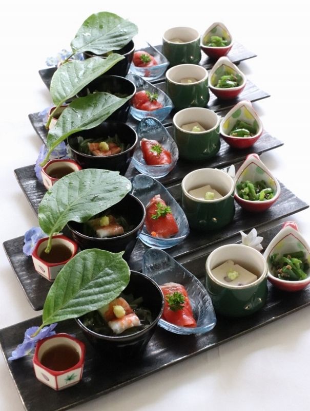 三重県最北端 いなべ市「阿下喜 あげき」の 日本料理 昭栄館 の料理長のブログ。2006年9月13日から12年間毎日更新中です。 ↑ いなべ市ってこんなところ。今年2019年3月17日 東海環状自動車道 東員IC~大安ICが開通しました。 大安ICを降りて当店まで、15分くらいです。 本日は、2019年 6月2日 日曜 友引。たまには、店内の様子も。入口の自動ドアを入ったところです。私の趣味の盆栽 鉢植えをいろいろ飾っております。木々花々の名前が添えてあります。 ↑ 金盃というサツキです。 ↑ 淀の光 コチラもサツキ。昨年の剪定が悪かったせいか、花数が少ないです。勉強しましょう。店内ロビーの様子。掛け軸を夏らしいものに替えました。大きな亀の剥製もまた登場。 ↑ 立山の舞・・・サツキです。 まだまだつぼみはたくさん。しばらく楽しめます。 ↑ こんなのもありますよ。 令和パネルは、5月から一番人気。(記念写真にご利用頂きます。) ↑ もみじの寄せ植えは、四季菜 尾平店で求めました。こんなのもあります。40年くらい前の地図。まだミルク(近くの道路の名前)が完成していないです。ご来店の際は、懐かしい地図を是非ご覧下さい。ちゃんちゃんこコーナー。還暦(60歳) 古希(70歳) 喜寿(77歳) 傘寿(80歳)米寿(88歳) 卒寿(90歳) 白寿(99歳) 百寿(100歳)それぞれのお祝い用に、5色のちゃんちゃんこをご用意しています。長寿のお祝いは、是非 いなべの日本料理 昭栄館へ。 ↑ ニレケヤキ ↑ 四季菜 尾平店で求めました。 芋の品種は、八つ頭とのこと。 近日、名札をを添えたいと思います。 ↑ 唐楓の寄せ植え。 秋には綺麗に紅葉します。 ↑ 羽蝶蘭です。 昨年、東近江のイワナ屋さんに頂きました。 今年も開花してくれてホッとしています。 ↑ 羽蝶蘭、昨年の見頃の様子です。続いて本日のお料理風景。ご法事でお越しの19名様 20名様のお献立です。地元いなべ食材は、色を変えて印刷しています。結構いろいろあるでしょう~。はじめのお料理「前菜」です。本日は、4種盛り。(内容はお献立をご覧下さい。)庭で採りたての紫陽花の小花(2種)、ギボウシの若葉を添えて・・・。赤ちゃんのお食い初めでお越しの6名様一歳のお誕生会でお越しの4名様のお献立です。祝 の遊印を捺して・・・。 ↑ 今年25組目の赤ちゃんのお食い初め膳 ↑ 一歳のお誕生日お祝い膳 11組目のお料理風景は、 また後ほど詳しくご紹介して参ります。本日も作 恵乃智 のご注文がたくさんございました。本日の飾り付けです。 庭で採りたての紫陽花を添えて・・・。(他にもいろんなあしらい方をしました。) いなべの季節感と共に、美味しいお酒をどうぞ~。 本日もたくさんのご来店ありがとうございました。 料理長