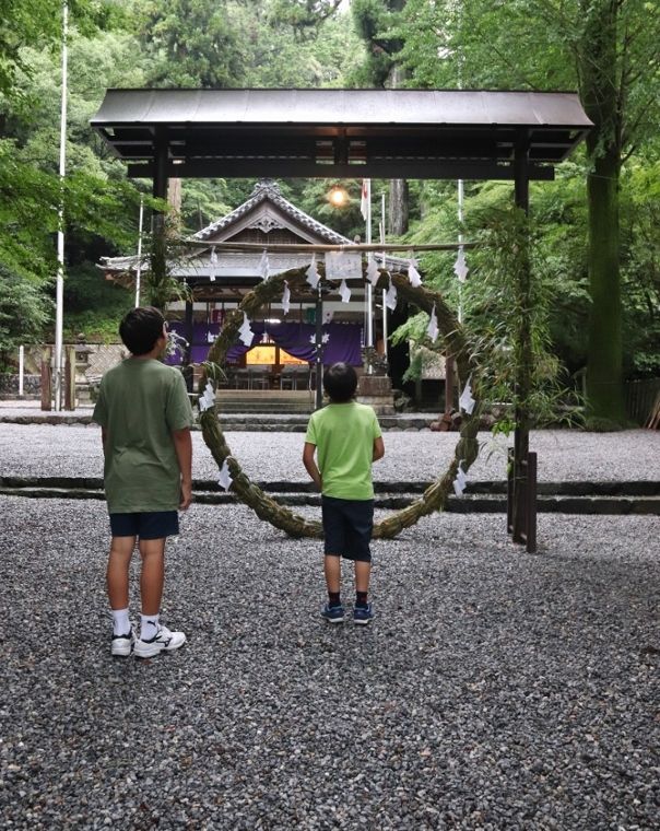 三重県最北端 いなべ市「阿下喜 あげき」の 日本料理 昭栄館 の料理長のブログ。2006年9月13日から12年間毎日更新中です。 ↑ いなべ市ってこんなところ。今年2019年3月17日 東海環状自動車道 東員IC~大安ICが開通しました。 大安ICを降りて当店まで、お車10分くらいです。 本日は、2019年 6月30日 日曜日。ご予約は、お昼席だけでしたので、夕方からはお休み。料理長の休日です。当店から車で5分。いなべ市北勢町垣内の賀毛神社へ。次男(中1) 三男(中2)と一緒に。今日で今年の前半が終わり。夏越しの祓い 茅の輪くぐりに参りました。清めてから、さあ、茅の輪くぐり!ここ数年、毎年来ているので、周り方 お参りの仕方、子供達よくわかっています。半年分の穢れを祓い、スッキリしました。本殿へ。今年前半の感謝、後半の誓いをして・・・。茅の輪くぐり、楽しいですよ~。今年出来なかった方は、また来年訪れてみてね~。昨年2018年の茅の輪くぐりの様子は、コチラからご覧下さ~い。 料理長