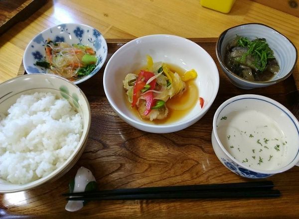 三重県最北端 いなべ市「阿下喜 あげき」の 日本料理 昭栄館 の料理長のブログ。2006年9月13日から12年間毎日更新中です。 ↑ いなべ市ってこんなところ。にぎわいの森で、日本中から注目を集めている町ですよ。 にぎわいの森 いなべヒュッテ って?本日は、2019年 6月24日 月曜日。先週金曜日。中学1年の次男が、「授業で苔(コケ)を使うんやけど、ある~?」って聞いてきました。『任しとけ!」創業から90年の当店。敷地(1000坪)内のあちこちに、苔が自生しています。苔盆栽を作ろうと、最近採ってきたものがありましたので、小さな容器に入れてあげました。詳しくわかりませんが、2種類。最近、こんな苔盆栽を作っていましたので、小さな苔盆栽も持たせました。(写真には写っていませんが、小さな赤い鉢の苔盆栽です。)授業(理科)で役だったかな?地元いなべ食材の仕入れに いなべっこ に参りました。JAみえきたが運営するファーマーズマーケットのこと。当店から車で3分ほど。近くてとても便利です。本日の仕入れものです。ピーマン お茄子 ミニトマト などたくさんの夏野菜。全て地元いなべ産です。蕨(わらび) 隠元豆 じゃがいも 赤玉葱 キャベツ 牛蒡 椎茸 全て地元いなべ産。小松菜 セロリ 焼き海苔は、お隣 桑名産です。 地産地消に力を入れて・・・。本日は、お昼までの仕込みデー。午後からは、料理長の休日です。妻と近くでランチ。 美味しく頂きました~。いなべ市役所に参りました。近くに出来てとても便利です。いろいろと相談事があり、農林課によくお邪魔します。向井 理さん似のお兄さんが親切にしてくれます。いつもありがとう!同じフロアの商工観光課にお邪魔して、パンフレットなど頂いてきました。再来年は、三重とこわか国体ですね。ポケットティッシュもたくさんお預かりしましたよ。私どもの店内に いなべのパンフレットコーナーを設けています。 ↑ スタッフ側から見たところ いろいろあるでしょう~。 ポケットティッシュも置かせてもらっています。 午後は、次男をいなべ市役所に送ってきました。シビックコア棟の自習室で、ほぼ毎日勉強しています。もうすぐ期末テスト。頑張って!市役所内に食堂があります。一般の方でもお食事可能です。 ↑ 2週間分のメニューが載っています。(写真は、6月25日 火曜に撮影) Aセット Bセット 選べるランチですよ~。 料理長