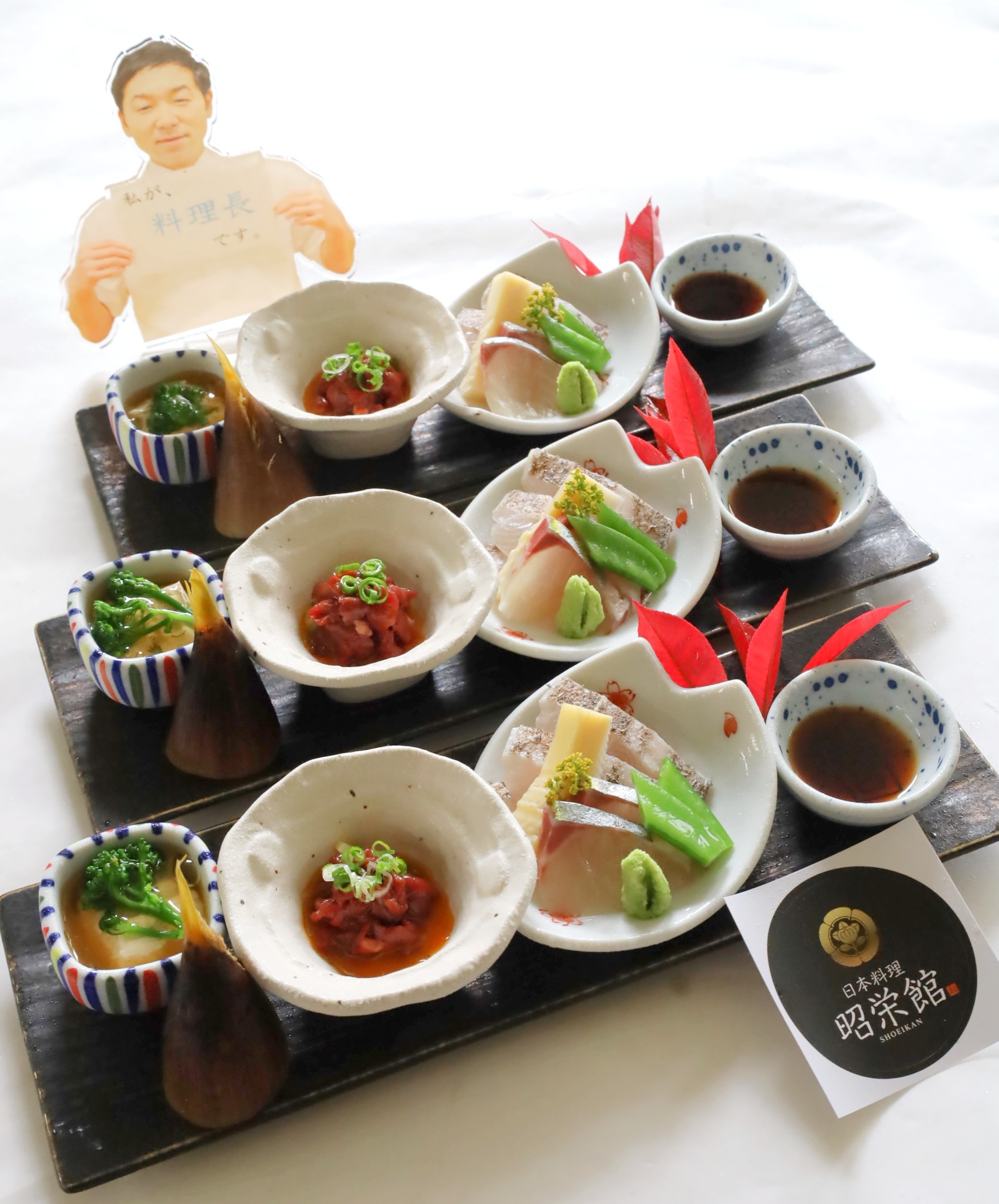 本日は、2025年 4月12日 土曜 大安。大忙しで駆け足になりますが、本日の昭栄館の様子をご覧ください。テイクアウトお料理のご予約を承っていました。「ごちそう弁当 華 4,500円」のお献立です。合計12膳承っていました。 北勢町 北中津原地区へお届けに上がりました。「ごちそう弁当 雅 5,500円」のお献立です。18膳承っていました。 東員町 山田地区へお届けに上がりました。この他、・白焼きうなぎ 1本・うな重 2膳承っていました。 大切なお席に当店のお料理のご注文ありがとうございました!続いて ご来店のお客様のお献立です。ご法事 8名様は、30畳の雅の間にご用意しました。お献立です。雅会席 5,500円のご注文でした。橙色で印刷してあるのが、いなべ 桑名 四日市食材。地産地消 国消国産に力を入れて・・・。ご法事 14名様は、30畳の扇の間にご用意しました。お献立です。雅会席 5,500円の御飯ものを鯛茶漬けに変更されました。(+800円)「お造里」です。左から・汲み上げ生湯葉 いなべのブロッコリー 木の芽あんかけ タピオカスターチ・桜肉(馬肉)のユッケ風 いなべの黄身醤油 いなべのお葱 四日市のラー油・紀伊長島産キハダまぐろ 丹後産さわらの炙り 絹さや 私が掘ってきた桑名の筍 自家栽培の花山椒 本わさび 土佐醤油 でした。 大切なお席に当店のご利用ありがとうございました!続いて夜席。退職祝い 送別会の9名様は、30畳の雅の間にご用意しました。お献立です。雅会席 5,500円のご注文でした。コチラの皆様からは、お帰りの際に記念写真を承りました。 ↑ こんな感じにお撮りできています。送別のお花昭栄館オリジナルの記念写真用メッセージカードをお持ちになって思い出深いお写真となりました。 お仕事 お疲れ様でした~。続いて、阿下喜小学校 同窓会 19名様は、30畳の華の間にご用意しました。 ↑ 50歳の皆様だそうです。私よりいくつか後輩になります。お献立です。雅会席 5,500円のご注文でした。コチラの皆様からは、お帰りの際に記念写真を承りました。まず1枚目 数字バルーンをお持ちになって、 2025 4 12 50歳!続いて、2枚目 昭栄館オリジナルの記念写真用メッセージカードを たくさんお持ちになって、メッセージ感一杯のお写真となりました。いなべの昭栄館は、幸せレストランお写真、早速現像に出しています。ご希望の枚数、焼き増ししてお届けします。お届けまで、一週間~10日ほどお待ちください。 大切なお席に当店のご利用ありがとうございました。2015年 123組2016年 203組2017年 228組2018年 224組2019年 217組2020年 177組2021年 108組2022年 139組2023年 157組2024年 156組のお客様がご利用になった記念写真撮影 郵送サービスって?(撮影 現像 焼き増し 送料 全て無料です。) 記念写真 今年50 51組目の皆様でした。 昭栄館公式インスタグラムからもお写真ご覧になれますよ!Lサイズ(普通サイズ)の写真は、ご人数分まで無料です。2Lサイズ(Lサイズの倍の大きさ)の写真は、1枚 200円。A4サイズ(コピー用紙のサイズ)の写真は、1枚 1,000円で承ります。 本日もたくさんのご利用ありがとうございました。三重県最北端 いなべ市「阿下喜 あげき」の 日本料理 昭栄館 の料理長のブログ。2006年9月14日から18年間毎日更新中です。私 料理長 53歳。もう33~28年前になりますが、有名料亭 神戸吉兆で修行して参りました。当店のこと毎日発信している情報 画像など、昭栄館リットリンクからご覧下さいませ。 ↑ いなべ市ってこんなところ。先日 令和7年3月29日(土曜)15時に、いなべインターチェンジが開通。高速降りて、当店までお車で3分くらいになりました!!!当店のご予約は、 お電話 0594-72-2065 日本料理 昭栄館又は、昭栄館LINE公式アカウントから 24時間 365日承ります。 AIによる自動応答(ヘンテコな応答かも)ですが、 24時間以内に 私 料理長からお返事差し上げますので、 しばらくお待ちくださいませ。 昭栄館LINE公式アカウント お友だち登録お待ち申し上げます。 (お急ぎの場合は、お電話ください)お撮りしたお写真の画像データをLINEからお送りすることが出来ますので、とても喜ばれております。今後とも いなべの昭栄館をよろしくお願い申し上げます。 こんな気持ちで、日々お料理しています。 料理長 森嶋雅樹