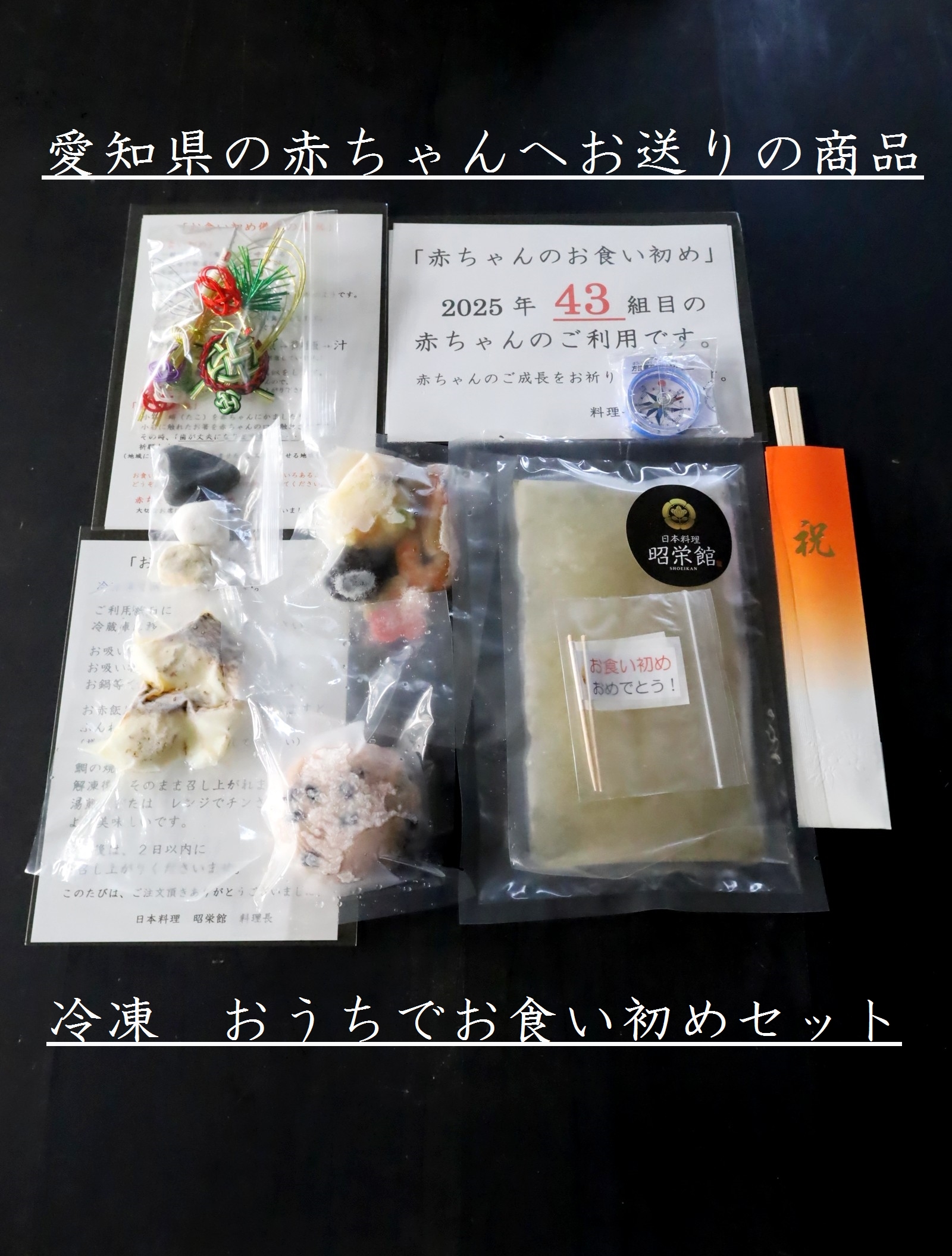 本日は、2025年 4月6日 日曜 大安。当店大人気の 赤ちゃんのお食い初めのご予約を承っていました。2013年 81組2014年 80組2015年 82組2016年 79組2017年 68組2018年 75組2019年 68組2020年 98組2021年 104組2022年 204組2023年 188組2024年 202組様に ご利用頂いた赤ちゃんのお食い初め。 たくさんのご利用ありがとうございます。↑ 2020年4月から始めた テイクアウトお料理の「おうちでお食い初めセット」も大人気。2022年春からは、「楽天市場 日本料理 昭栄館」にて、『おうちでお食い初めセット』も販売開始しましたよ。北は 北海道から、南は 沖縄県まで、全国からご注文頂いております。それでは、ご来店ならではの『赤ちゃんのお食い初め膳』『おもてなし』の様子をご覧下さい。お座敷の様子から。ご家族8名様、30畳の雅の間にご用意しました。店内全て足元が楽なテーブル椅子席です。当店は、完全個室のお店。赤ちゃんがお泣きになってもご安心ください。お座敷の隅には、赤ちゃん用クーハン赤ちゃん用バウンサー をご用意。昭栄館オリジナルの記念写真用メッセージカードホワイトボードもご用意しましたよ。 ↑ 大人の方のお料理風景は、コチラ。赤ちゃんのお食い初め膳のお献立です。(赤ちゃん専用 3,800円 税込)お献立があると、嬉しいですよね。本日の赤ちゃんは、男の子。男の子バージョン盛りでご用意しました。お献立の最後に、何組目と書いてございます。「うちの赤ちゃん、何組目かな~?」って楽しみにお越しください。2025年 今年41組目の赤ちゃんのご利用でした。赤ちゃんのお食い初め膳です。おめでたい朱籠に、連子鯛の姿焼きを中心に、鶴 亀 福 吉 紅白鏡餅など、おめでたい器に子孫繁栄を願うおめでたいお料理を盛り込みました。お食い初め用の小石を盛り込んでいます。お好きな小石でどうぞ。やっこ凧をあしらって、男の子らしく・・・。竹灯りキャンドルに火を灯し、鶴 亀 松竹梅の水引飾りをあしらって、雅な感じに・・・。昭栄館のお食い初め膳は、季節感もたっぷり盛り込みます。庭で採りたての雪ヤナギ 久留米ツツジ ムスカリ 枝垂れ桜 鯉のぼりピック など、飾りました。今日はお天気が悪く、綺麗に撮れませんでゴメンナサイ。いつか私のブログをお読みになって、「お食い初めって、あんな季節だったんだね~。」 って、お話になることを願いながら、日々ブログを書いています。 (18年間毎日更新中です。)当店大人気の赤ちゃんのお食い初め。「お食い初め儀式の流れ 2025」をご用意しています。これで安心!ご覧になりながら、お食い初めをお楽しみ下さいね。今年の恵方は、西南西。恵方を向いて、お食い初め! (方位磁石は、お座敷にご用意しています。)赤ちゃんのお食い初め おめでとうございま~す。コチラのご両家様からは、お帰りの際に、記念写真を承りました。↑ こんな感じにお撮りできています。昭栄館オリジナルの記念写真用メッセージカードをたくさんお持ちになって、とっても楽しく 幸せいっぱいのお写真となりました。お客様から「外の桜の前でも撮ってもらえますか」とのご要望。 ↑ こんな感じにお撮りして差し上げました。いなべの昭栄館は、幸せレストラン お写真、早速現像に出しています。 お届けまで、一週間~10日ほどお待ちください。 大切なお席に当店のご利用ありがとうございました。2015年 123組2016年 203組2017年 228組2018年 224組2019年 217組2020年 177組2021年 108組2022年 139組2023年 157組2024年 156組のお客様がご利用になった記念写真撮影 郵送サービスって?(撮影 現像 焼き増し 送料 全て無料です。) 記念写真 今年49組目の皆様でした。 昭栄館公式インスタグラムからもお写真ご覧になれますよ!Lサイズ(普通サイズ)の写真は、ご人数分まで無料です。2Lサイズ(Lサイズの倍の大きさ)の写真は、1枚 200円。A4サイズ(コピー用紙のサイズ)の写真は、1枚 1,000円で承ります。 大切なお席に当店のご利用ありがとうございました。私 三児(現在 大学4年 大学1年 高校2年)の父 53歳。お子様の成長を願う パパさん ママさんの気持ちよくわかるつもりです。日々、心を込めてお料理しています。当店大人気の赤ちゃんのお食い初め膳のこと、 当店HP内 お祝い膳のページ に詳しく書いています。 ブログ内お食い初め膳のカテゴリからは、 過去のお食い初め膳、ず~っとさかのぼってご覧になれますよ。いなべ市内は、もちろん、東員町 菰野町 桑名市 木曽岬町 星見ヶ丘 川越町 朝日町 四日市市 羽津 あかつき台 山城 鈴鹿市 亀山市 津市一志町 津市半田岐阜県 多治見市 各務原市 上石津町愛知県 名古屋市 東海市 清須市 豊田市 豊田市本田町 一宮市 木曽川町 大府市 稲沢市 江南市 西尾市 愛西市大阪府 大阪市 高麗橋 茨木市 箕面市 京都府 滋賀県東近江市 滋賀県甲賀市土山町兵庫県宝塚市 神戸市 三田市 たつの市 西宮市宮崎県延岡市 山口県下関市宮崎県東諸県郡 東京都国分寺市のパパさん ママさん おじいちゃん おばあちゃん 大切な赤ちゃんのお食い初めのお席は、是非 いなべの昭