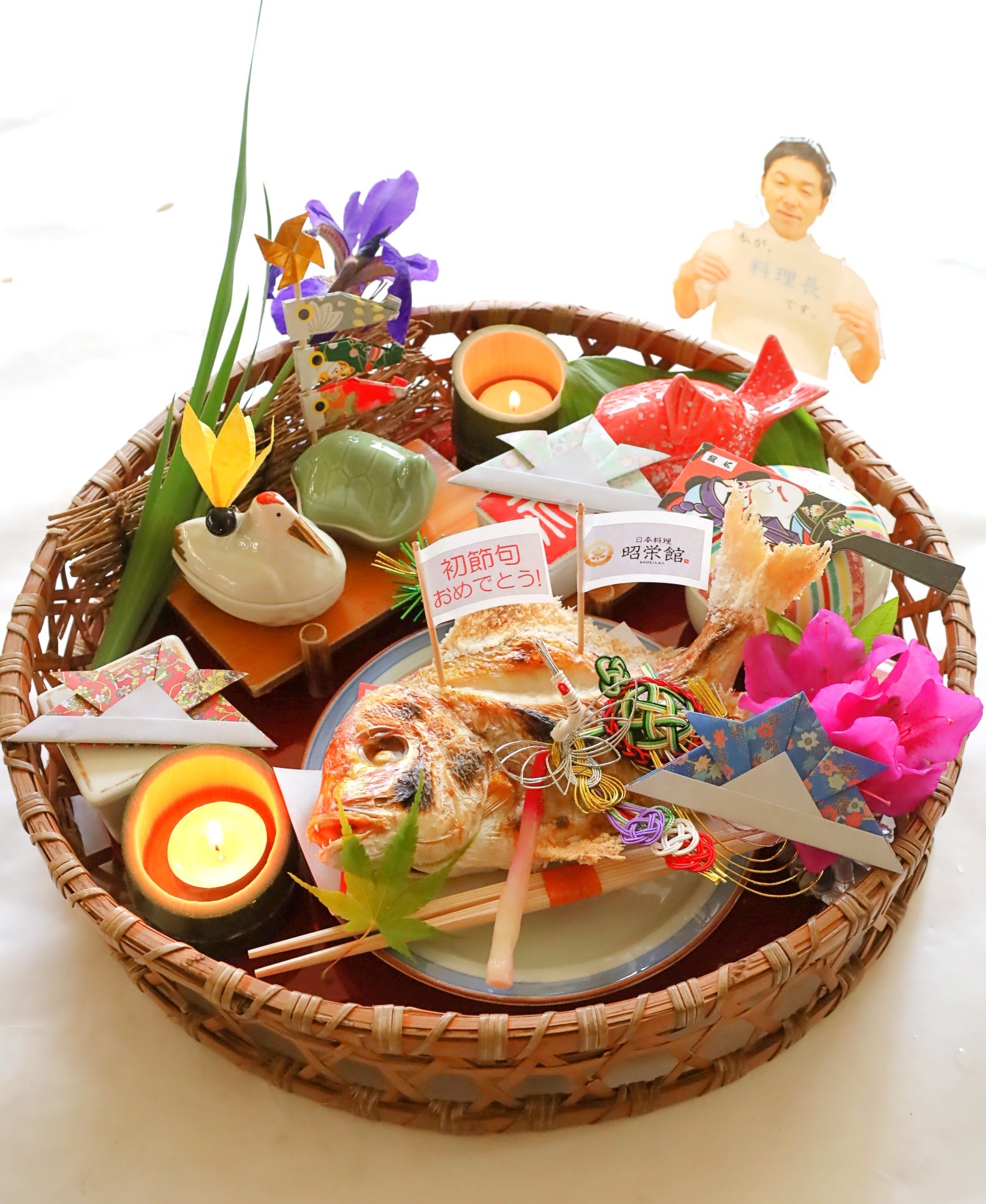 本日は、2025年 5月5日 大安 戌の日 こどもの日。端午の節句 初節句のお祝いのお席をお二組承っていました。当店人気の「初節句のお祝い膳」のお料理風景をご覧頂きましょう。お座敷の様子から。まずはお一組目、初節句のお祝い 7名様は、30畳の雅の間をご用意しました。当店全て足元の楽なテーブル椅子席の個室です。ご安心くださいませ。お座敷の隅には、バウンサーをご用意。記念写真用メッセージカード鯉のぼりホワイトボード をご用意しました。お一組目、初節句のお祝い 7名様は、30畳の扇の間をご用意しました。バウンサー記念写真用メッセージカード鯉のぼりホワイトボード をご用意しました。 ↑ 大人の方のお料理風景は、コチラからご覧ください。初節句のお祝い膳 離乳食バージョン盛りのお献立です。(初節句の赤ちゃん専用 3,800円 税込)この時期の初節句のお祝いは、男の子。端午の節句 男の子バージョン盛りでご用意しました。初節句のお祝い膳です。(本日は離乳食バージョン盛りです。お食い初めの小石盛りもできます。)おめでたい朱籠に、連子鯛の姿焼きを中心に、鶴 亀 吉 福 紅白鏡餅など、おめでたい器に、子孫繁栄を願う おめでたいお料理を盛り込んでいます。「竹灯りキャンドル」に火をともして、雰囲気もアップ。鶴 亀 松竹梅の水引飾りで雅な感じに・・・。昭栄館の初節句のお祝い膳は、季節感もたっぷり盛り込みます。庭で採りたての姫菖蒲 ツツジ もみじの若葉 ギボウシの若葉兜の折り紙 鯉のぼりピック をあしらって男の子らしく・・・。赤い鯛の器の器の中には、離乳食。魚介といなべのお野菜の雑炊仕立てを盛り込んでいます。本日の雑炊仕立ての食材・・・紀伊長島産 真鯛 大根 人参 いなべの生姜 いなべのお葱 いなべのミルキークイーン。鰹と昆布のお出し 醤油 お塩で味付けして炊き上げます。私、53歳。三児の父のオッサン料理長。子供たちが小さい頃は、毎日離乳食を作っていました。離乳食の加減、だいたいわかるつもりです。雑炊ですが、多めに炊き上げますので、残りはパックに詰めています。本日は、2パックずつの4パックになりました。冷凍保存したりして、召し上がり下さい。自作の「初節句 おめでとう」シールを貼っています。冷凍庫を開けるたび、幸せ気分! 初節句 おめでとうございま~す!お二組とも、お帰りの際に記念写真を承りました。 ↑ こんな感じにお撮りできています。たくさんの昭栄館オリジナルの記念写真用メッセージカードでとっても楽しいお写真となりました。ひいばあばです ひいじいじですをお持ちです。4世代揃っての記念写真となりました。4世代揃っての記念写真ってなかなか無いもの。昭栄館では、そんな「夢」が叶います!続いてもうお一組。 ↑ こんな感じにお撮りできています。 ご両家揃っての記念写真もなかなか無いもの。 昭栄館では、そんな「夢」が叶います!いなべの昭栄館は、幸せレストラン お写真、早速現像に出しています。 お届けまで、一週間~10日ほどお待ちください。2015年 123組2016年 203組2017年 228組2018年 224組2019年 217組2020年 177組2021年 108組2022年 139組2023年 157組2024年 156組のお客様がご利用になった記念写真撮影 郵送サービスって?(撮影 現像 焼き増し 送料 全て無料です。) 記念写真 今年66 67組目の皆様でした。 昭栄館公式インスタグラムからもお写真ご覧になれますよ!(料理はプロですが)写真は、アマチュアの私。うまく撮れない場合もございます。無料サービスということで、ご了承ください。Lサイズ(普通サイズ)の写真は、ご人数分まで無料です。2Lサイズ(Lサイズの倍の大きさ)の写真は、1枚 200円。A4サイズ(コピー用紙のサイズ)の写真は、1枚 1,000円で承ります。 大切なお席に当店のご利用ありがとうございました。私 三児(現在 大学4年 大学1年 高校2年)の父 53歳。お子様の成長を願う パパさん ママさんの気持ちよくわかるつもりです。日々、心を込めてお料理しています。初節句のお祝い膳 5月末までご用意できますよ!!!当店人気の初節句のお祝い膳のこと、 昭栄館ホームページ内 コチラのページ に詳しく書いています。ブログ内 初節句のお祝い膳のカテゴリからは、 過去のお祝い膳、ず~っとさかのぼってご覧になれますよ。いなべ市内はもちろん、 東員町 菰野町 桑名市 四日市市 川越町 朝日町 鈴鹿市 松阪市のパパさん ママさん おじいちゃん おばあちゃん 愛知県名古屋市 安城市 東海市 岐阜県多治見市 羽島郡岐南町 大垣市上石津町 京都は京丹後市の皆様、 大切な初節句のお祝いのお席は、是非 いなべの昭栄館へ~。三重県最北端 いなべ市「阿下喜 あげき」の 日本料理 昭栄館 の料理長のブログ。2006年9月14日から18年間毎日更新中です。私 料理長 53歳。もう33~28年前になりますが、有名料亭 神戸吉兆で修行して参りました。当店のこと毎日発信している情報 画像など、昭栄館リットリンクからご覧下さいませ。 ↑ いなべ市ってこんなところ。先日 令和7年3月29日(土曜)15時に、いなべイ