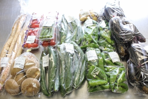三重県最北端いなべ市の日本料理 昭栄館の料理長のブログです。 6年と11ヶ月、毎日ブログ書いています。 明日9月13日で、ちょうど7年になります。今日(9月12日木曜)も地元いなべ食材の仕入れに いなべっこ に参りました。本日の仕入れもののご紹介です。・いなべの秋茄子・いなべの獅子唐・いなべの胡瓜・いなべの椎茸・いなべのミニトマト・いなべのオクラ・いなべのごぼう・いなべの生姜・いなべの茗荷・いなべの栗・いなべの油揚げ・いなべの厚揚げ・いなべの蒟蒻・いなべの産みたて卵・四日市酪農の牛乳とヨーグルト・伊勢ひじき など、地産地消に力を入れて・・・。(本日の写真ではございませんが) ↑ このように、店内にていなべ食材のご紹介をしています。続いて、 ↑ 銀松ぼっくりの製作の様子で~す。 料理長