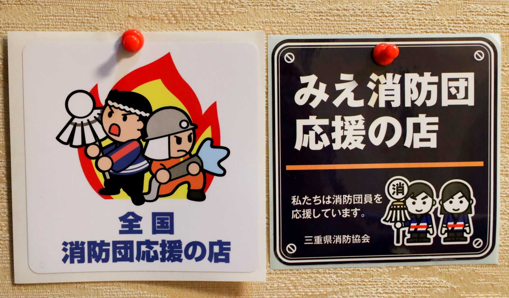 当店は、みえ消防団応援の店 全国消防団応援の店です!三重県 いなべ市 阿下喜(あげき)の幸せレストラン 日本料理 昭栄館。