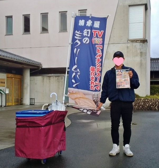 生クリームパン(岡山県 清水屋)の移動販売がお越しになりました。三岐鉄道三岐線 西野尻駅からワゴンを押して歩いてみえたそうです。びっくりびっくりびっくり