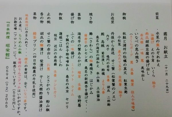 「料理長の日記」  三重県いなべ市             阿下喜(あげき)の日本料理 昭栄館