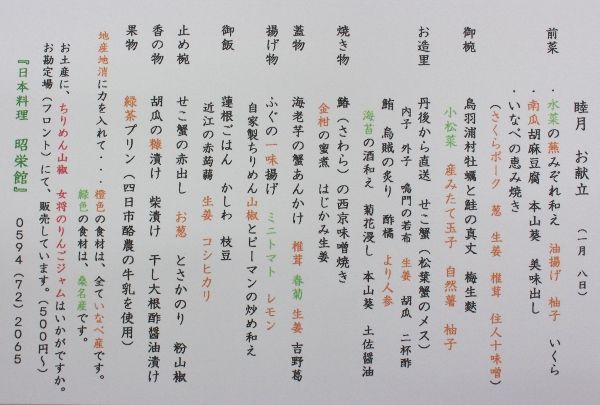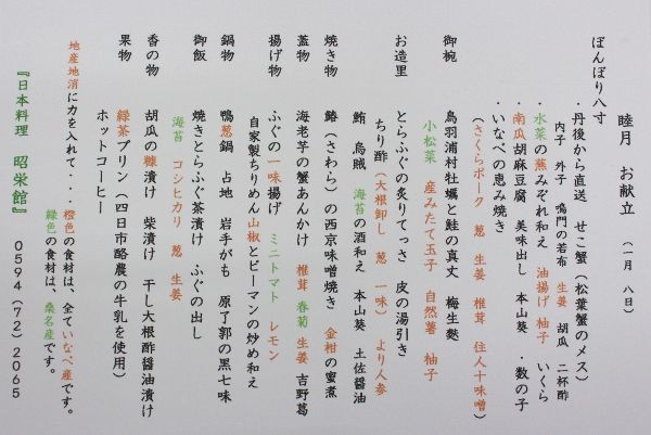 「料理長の日記」  三重県いなべ市             阿下喜(あげき)の日本料理 昭栄館