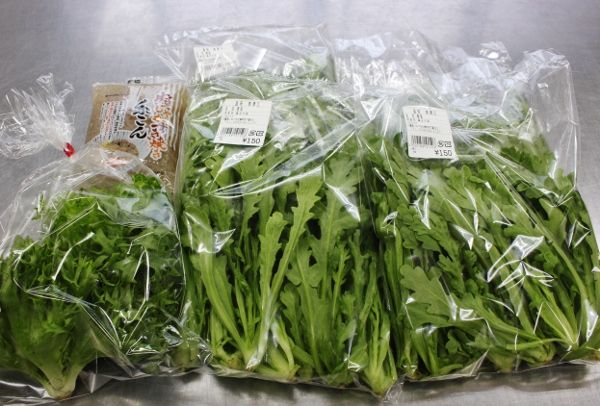 春菊は桑名産。レタス 糸こんにゃくは、東員町産です。