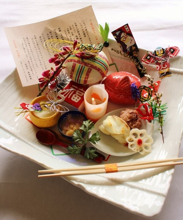 羽子板 おいり(香川県讃岐地方の嫁入り菓子)を盛り込んでいます。