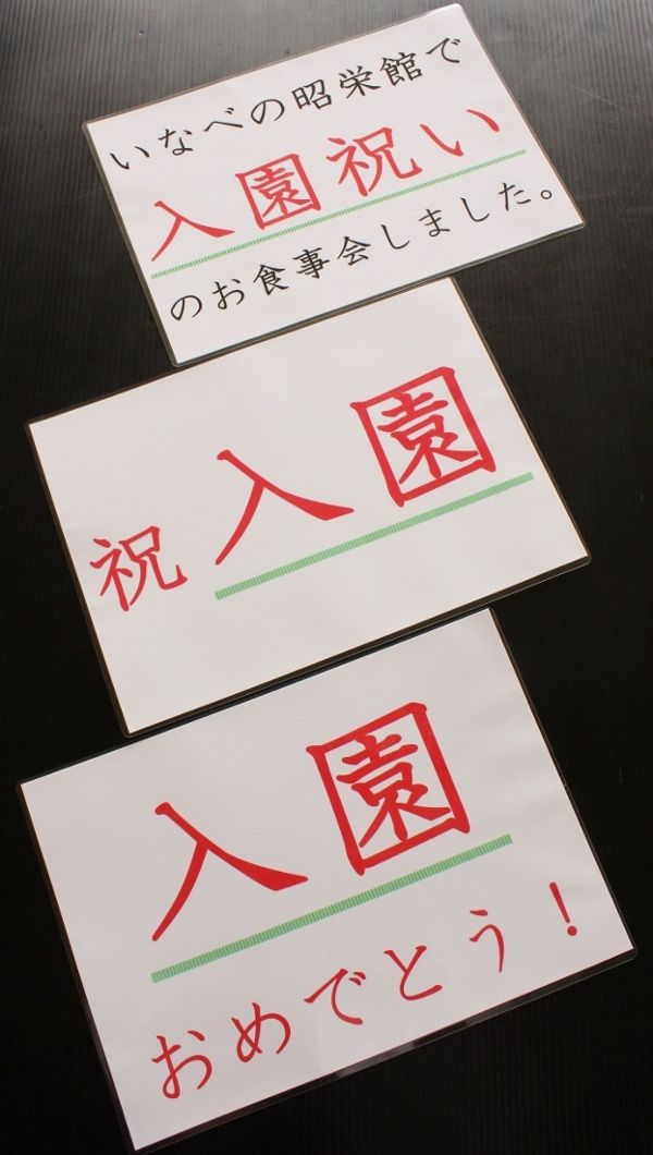 昭栄館オリジナルの記念写真用メッセージボードをお持ちになって、