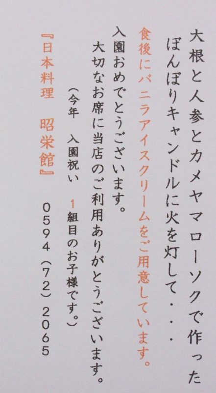 大切な入園 入学のお祝いのお席は、是非 いなべの日本料理 昭栄館へ。