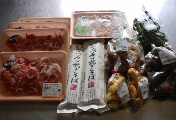 椎茸 里芋 生姜 ブロッコリー さくらポーク お蕎麦。