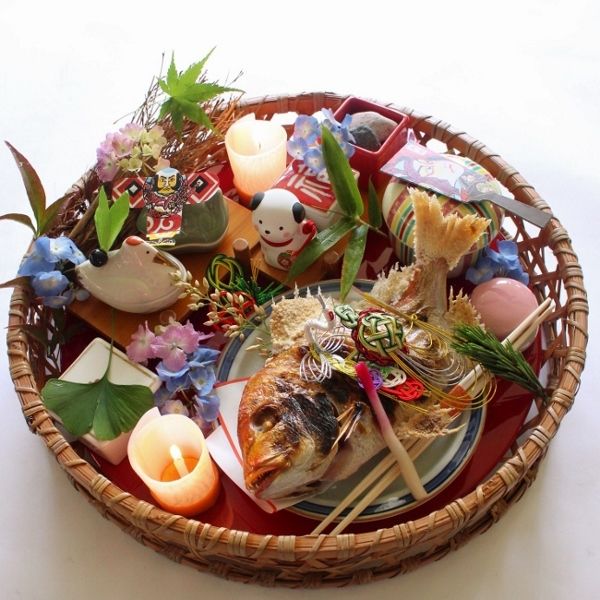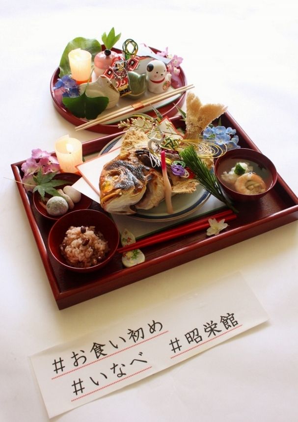 昭栄館のお食い初め膳は、季節感もたっぷり盛り込みます。