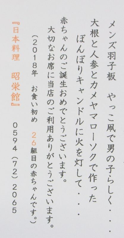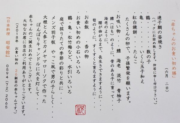 当店新HP内  大人気のお祝い料理のページ  に詳しく書いています。