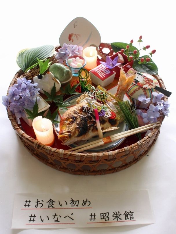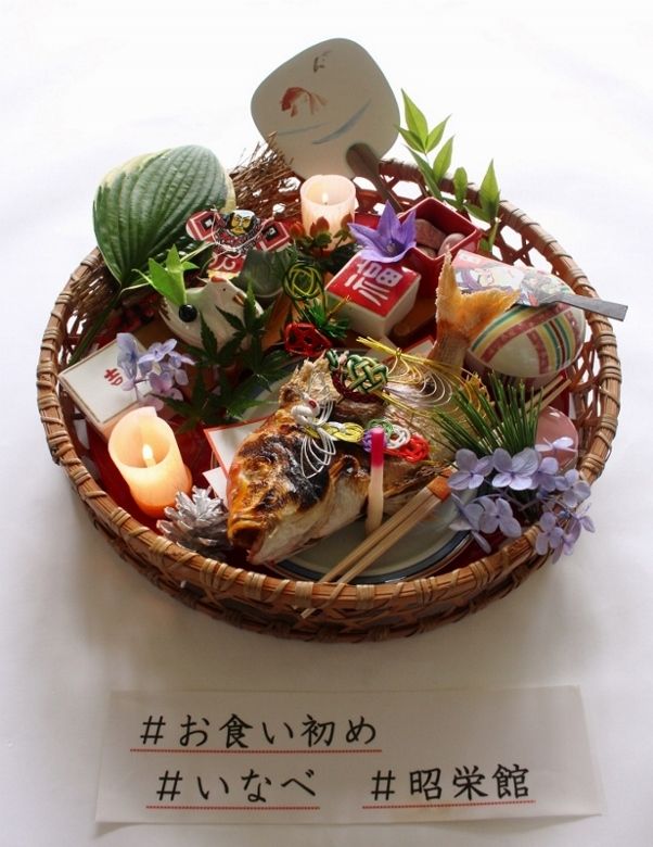 ↑ 赤ちゃんのお食い初め膳(男の子バージョン)のお料理風景は、