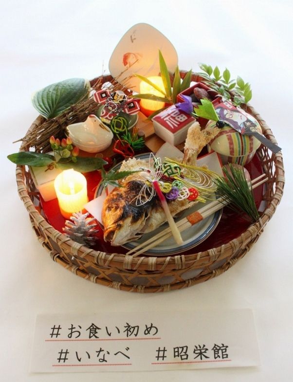 ↑ 赤ちゃんのお食い初め膳のお料理風景は、