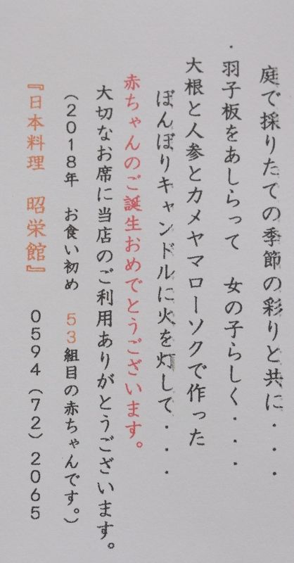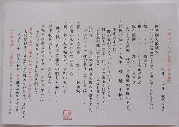 当店新HP内  大人気のお祝い料理のページ  に詳しく書いています。