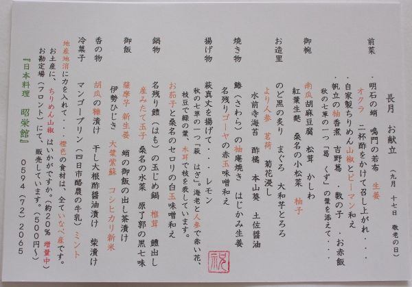 「料理長の日記」  三重県いなべ市             阿下喜(あげき)の日本料理 昭栄館