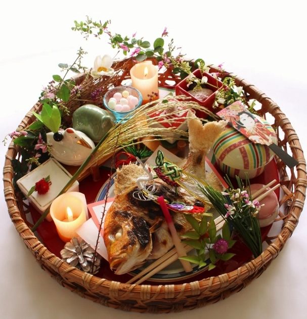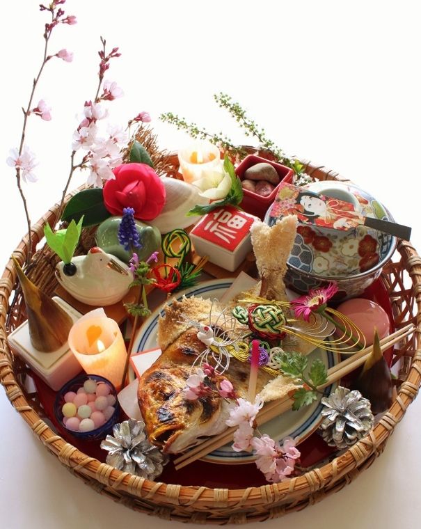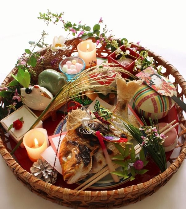おめでたい朱籠に、連子鯛の姿焼きを中心に、