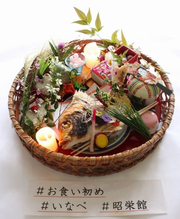 ↑ 赤ちゃんのお食い初め膳のお料理風景は、