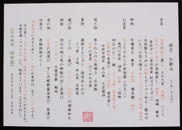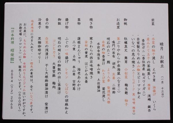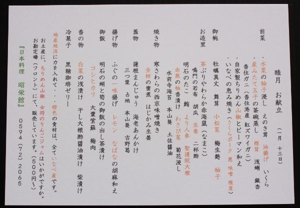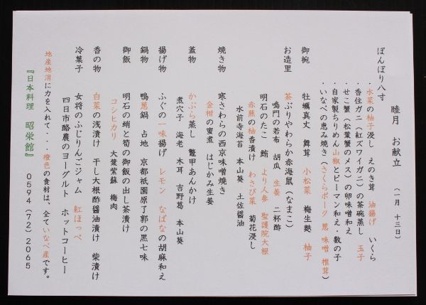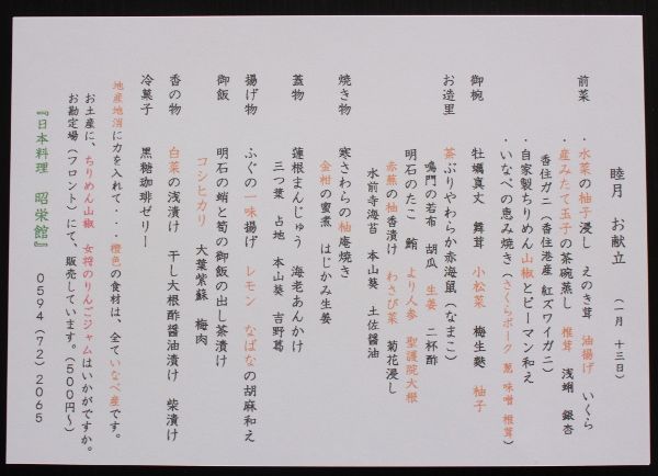 「料理長の日記」  三重県いなべ市             阿下喜(あげき)の日本料理 昭栄館