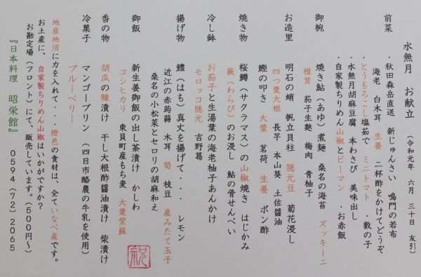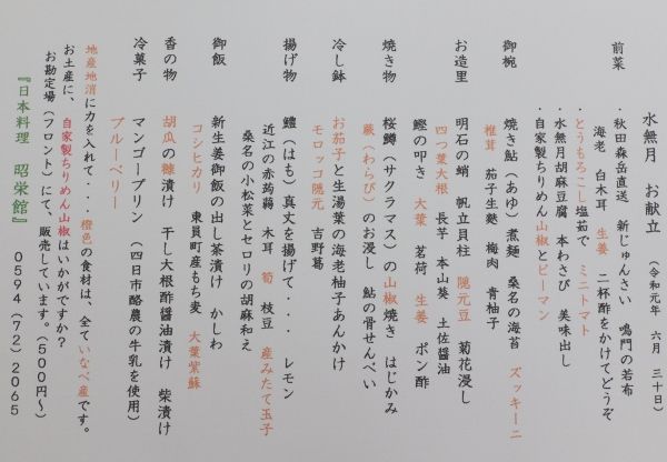 地元いなべ食材は、色を変えて印刷しています。