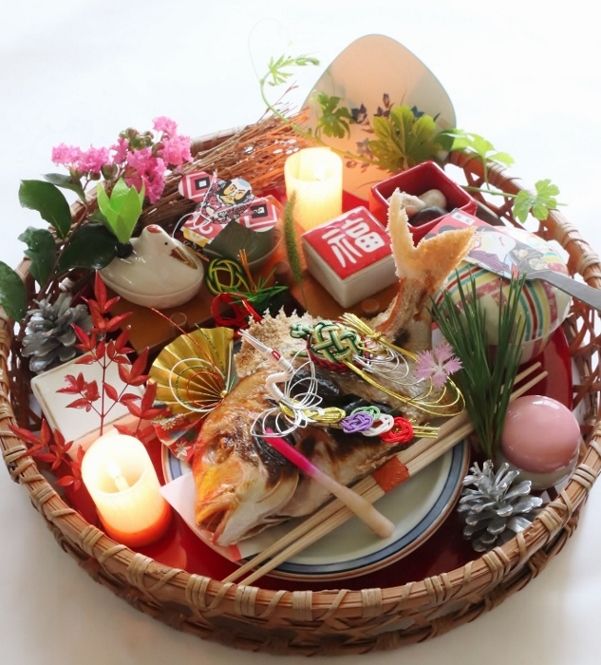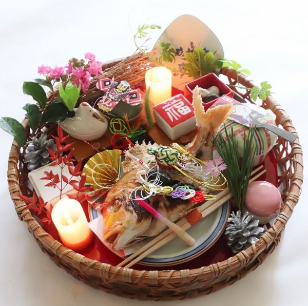 おめでたい朱籠に、連子鯛の姿焼きを中心に、