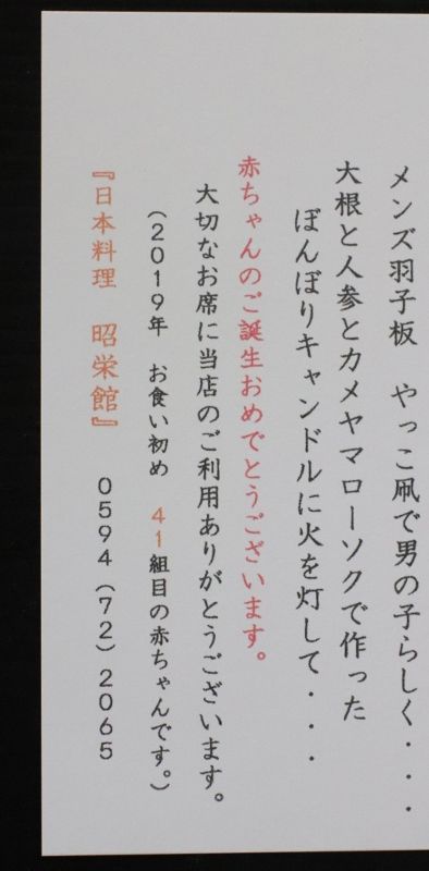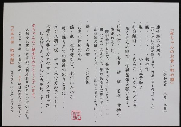 大切な赤ちゃんのお食い初めのお席は、是非 いなべの昭栄館へ~。