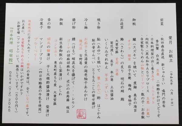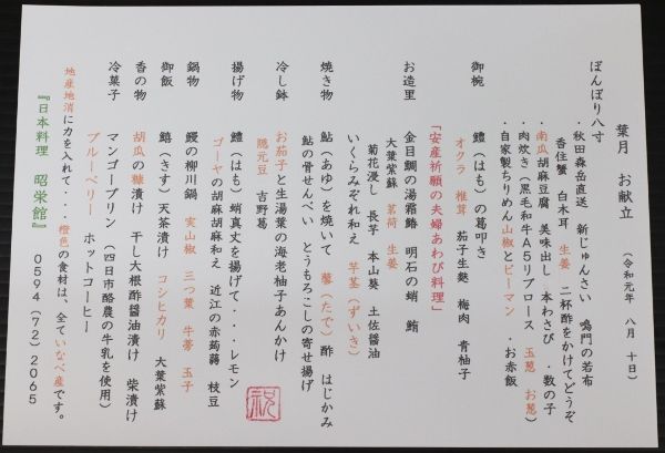内容は、お献立をご覧下さい。