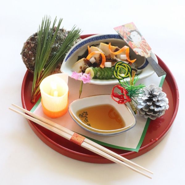 安産祈願の夫婦あわび料理、