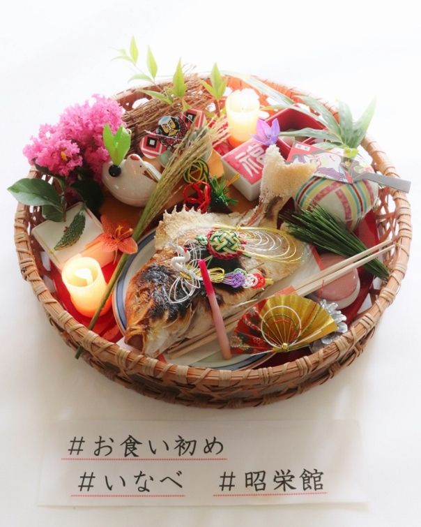 ↑ 赤ちゃんのお食い初め膳(今年44組目)のお料理風景は、