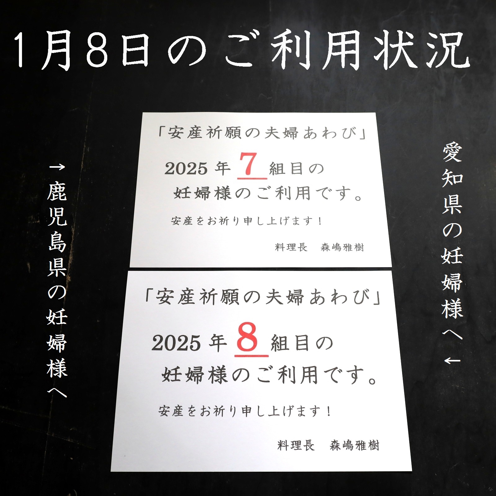 当店の安産祈願の夫婦あわび料理を召し上がって、