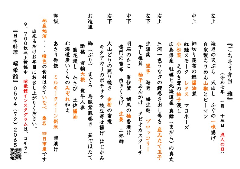 ごちそう弁当 雅 5,500円 東員町 山田… 2025.08.31