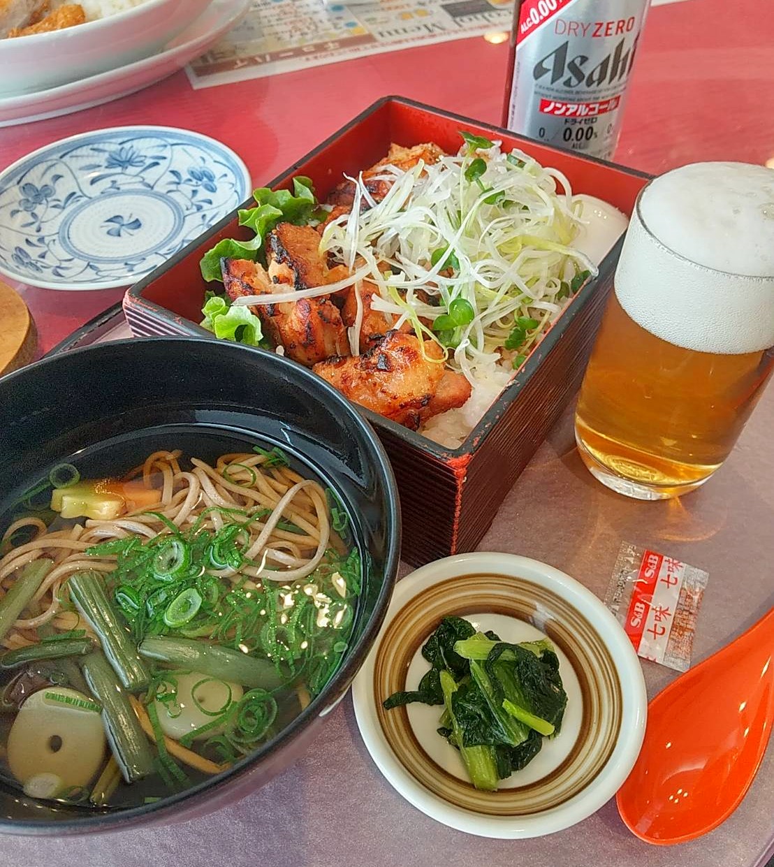 私は、鶏ちゃん焼き重とミニ山菜蕎麦