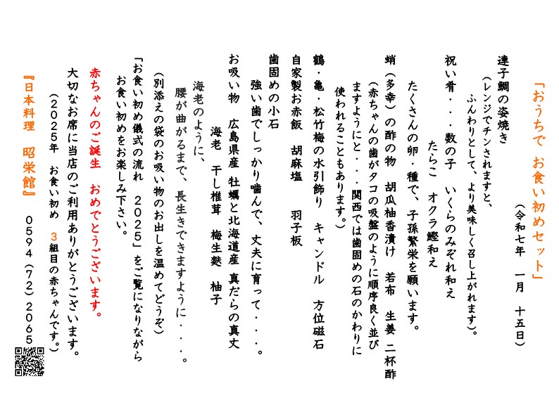 おうちでお食い初めセット 」のご注文を承って電話いました。