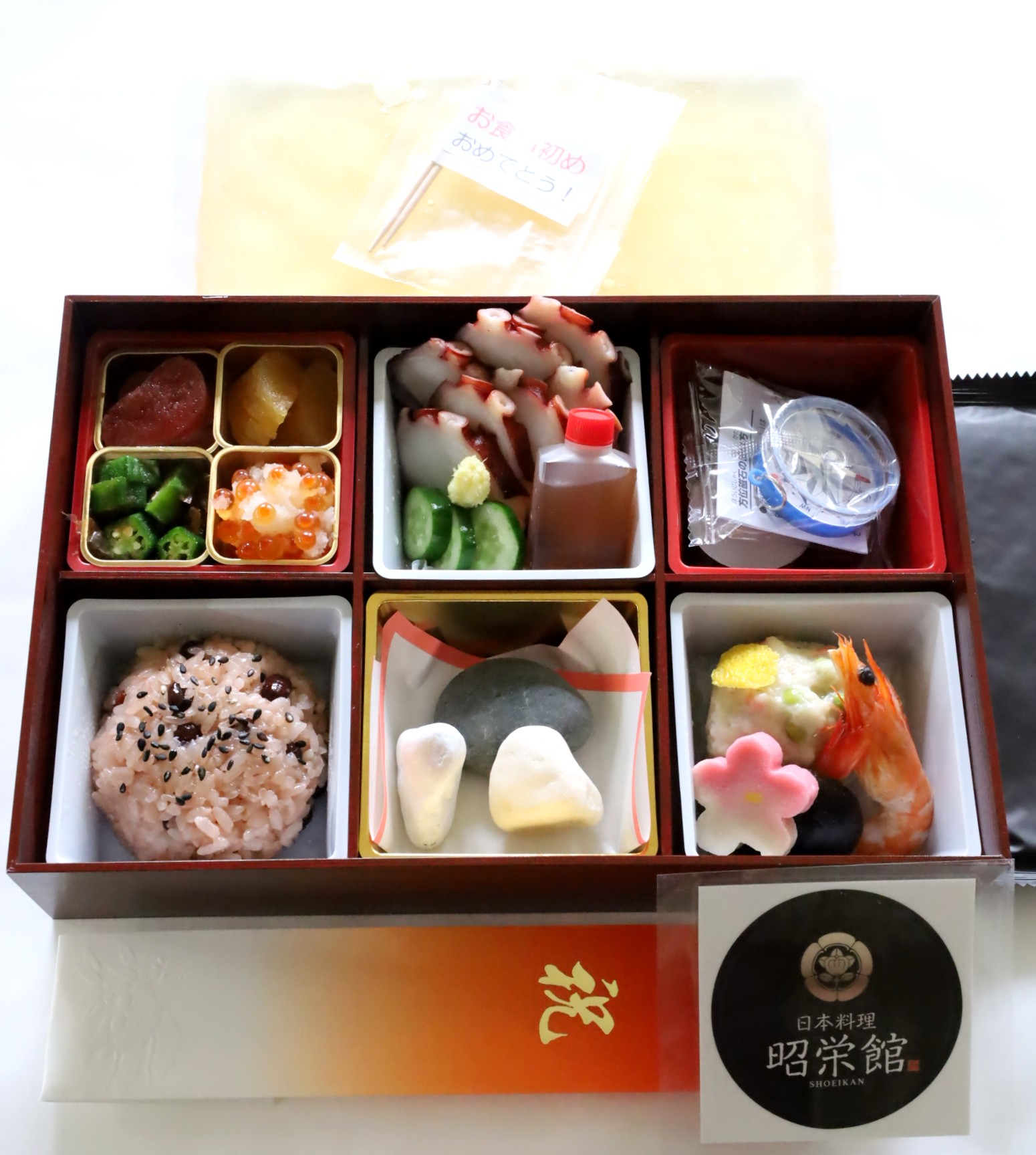 ・自家製お赤飯 ・お食い初めの小石 ・お吸い物の具材